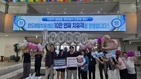 국내 최초 해양치유시설인 완도해양치유센터가 지난 주말 기준 누적 치유객 10만 명을 달성했다. 10만 번째 방문객은 광주광역시에서 친구와 함께 센터를 찾은 김아로 씨로 전복 세트와 센터 초대권을 경품을 받았다. 김 씨는 \"SNS에서 완도해양체유센터 체험 후기 영상을 보고 방문하게 됐는데, 10만 번째 치유객이 돼서 영광스럽다\"며 \"해양치유를 직접 해보니 스트레스가 풀리고 피부 보습에 너무 좋아서 꼭 재방문하고 싶다\"고 소감을 밝혔다. 완도해양치유센터는 해양기후·해수·해조류 등 천연 해양자원을 활용한 16개 해양치유 프로그램을 운영하며 웰니스 관광 명소로 자리매김하고 있다. 특히 해조류 거품·머드·저주파·스톤 테라피 등의 효과가 입소문을 타며 전국에서 발길이 이어지고, 재방문율도 높은 편이다. 센터는 지역민은 물론 가족 단위 여행객, 체험 학습 학생, 단체 관광객 등 다양한 계층에게 인기를 끌고 있다. 완도군은 이번 10만 명 달성을 기념해 환영 이벤트를 시작으로 10만 보 맨발 걷기 챌린지, 해양치유 건강 릴레이, 10만 축하, 포토존 SNS 인증 이벤트 등 다양한 행사를 9월 30일까지 진행한다. 신우철 완도군수는 \"치유객 10만 명 달성은 국민 건강 증진과 지역 관광 ·경제 활성화를 이끄는 의미 있는 성과\"라며 \"국내 최초라는 명성에 걸맞게 더 많은 사람들이 해양치유를 통해 심신을 회복할 수 있도록 양질의 서비스를 제공하겠다\"고 말했다.