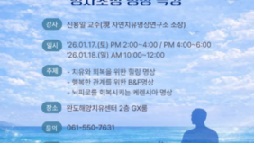 완도해양치유관리공단, 이용객 및 지역민의 마음 치유를 위하여 - 2026년 해양치유센터 명사초청 명상 특강 개최 - 완도해양치유관리공단(이사장 이채빈)은 완도해양치유센터 이용객과 지역민의 심리적 안정과 마음 치유를 위해「2026년 해양치유센터 명사초청 명상 특강」을 오는 2026년 1월 17일부터 18일까지 이틀간 개최한다고 밝혔다. 이번 특강은 해양치유센터를 찾는 이용객과 지역민에게 전문 명상 프로그램 체험 기회를 제공하고, 해양치유 기반의 치유 콘텐츠를 확대해 센터 인지도를 높이기 위한 취지로 마련됐다. 특강은 완도해양치유센터 2층 GX룸에서 진행되며, 참가 대상은 완도해양치유센터 이용객과 지역민 등 총 60여 명으로 회차별 20명씩 소규모로 운영된다. 프로그램은 명상 이론과 체험을 병행한 실습 중심 강의로 구성됐다. 강의 주제는 ▲치유와 회복을 위한 힐링 명상 ▲행복한 관계를 위한 B&F 명상 ▲뇌피로를 회복시키는 케렌시아 명상 등으로, 스트레스 완화와 정서 회복, 관계 개선에 초점을 맞췄다. 세부 일정은 ▲1월 17일(토) 오후 2시부터 4시까지 ‘치유와 회복을 위한 힐링 명상(지역민 대상)’ ▲같은 날 오후 4시부터 6시까지 ‘행복한 관계를 위한 B&F 명상(가족 단위 대상)’ ▲1월 18일(일) 오전 10시부터 12시까지 ‘뇌피로를 회복시키는 케렌시아 명상(지역민 대상)’ 순으로 진행된다. 이번 특강의 강사는 자연치유명상 분야 전문가인 진용일 소장으로, 현재 자연치유명상연구소 소장과 자연의학연구원 연구교수로 활동 중이다. 이 밖에도 숲힐링문화협회 교육원장, 한국스포츠인재개발원 힐링명상 지도자 자격과정 담당교수 등을 맡고 있으며, 힐리언스 선마을 명상전문교수와 고려대학교 의과대학 통합의학교실 연구교수 등 다수의 교육·연구 경력을 보유하고 있다. 이채빈 공단 이사장은 “이번 명사초청 명상 특강을 통해 해양치유센터 이용객과 지역민이 일상 속 스트레스를 해소하고 정서적 안정을 찾는 계기가 되길 바란다”며 “앞으로도 해양치유 자원을 활용한 다양한 치유 프로그램을 지속적으로 발굴·운영해 나가겠다”고 말했다. 한편 완도해양치유관리공단은 해양치유 자원을 기반으로 건강 증진과 치유를 위한 다양한 프로그램을 운영하며, 지역 사회와 연계한 치유·힐링 콘텐츠 확대에 힘쓰고 있다.
